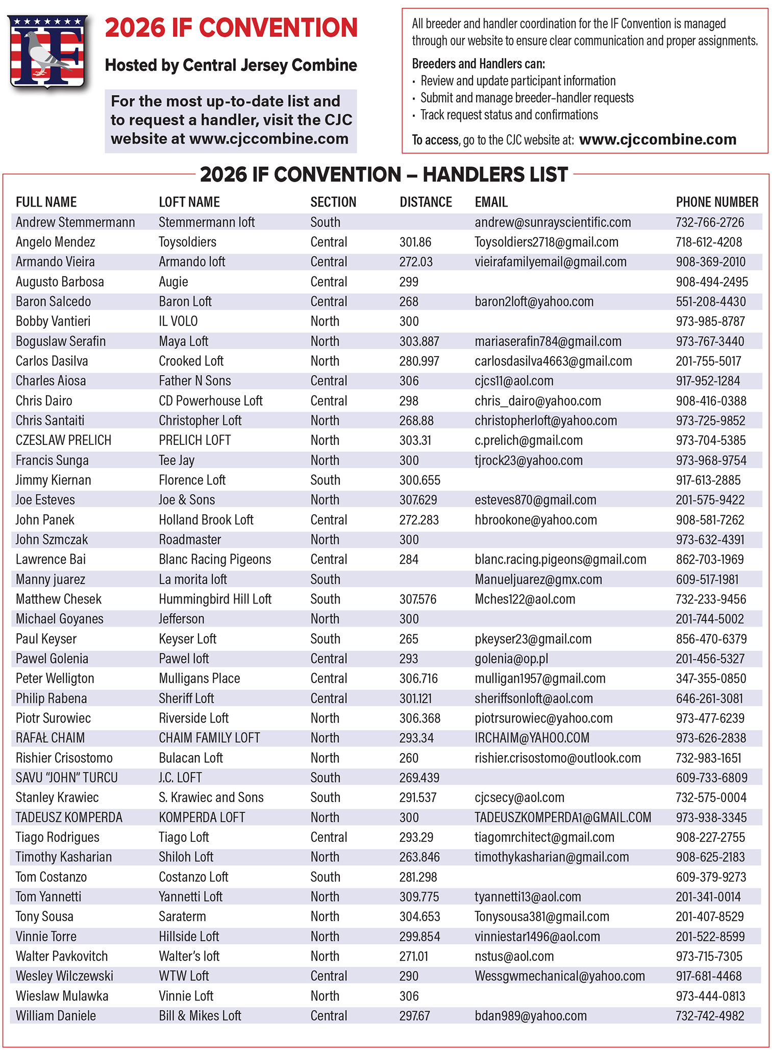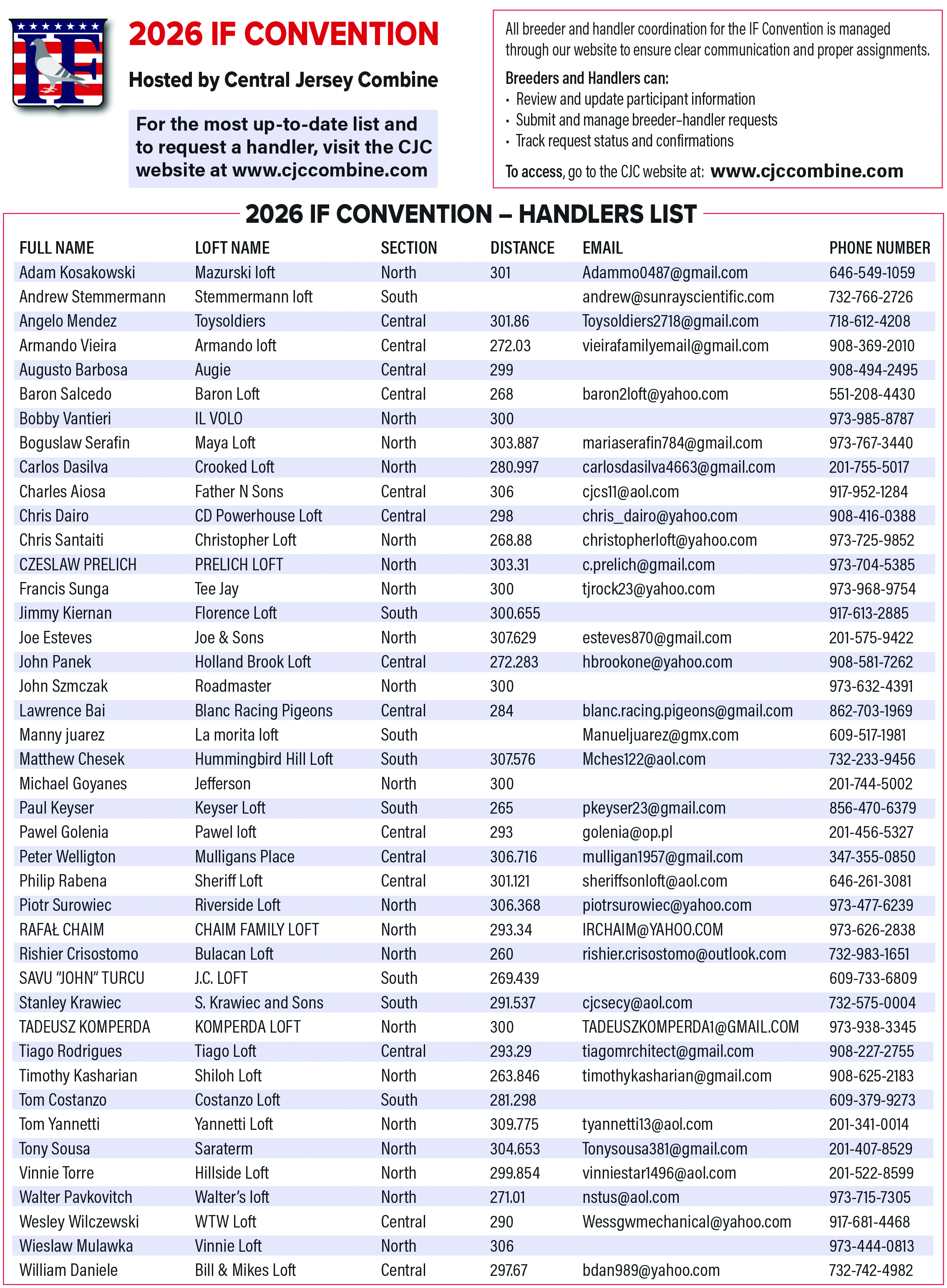 For the most up-to-date list and to request a handler, visit the CJC website at www.cjccombine.com.